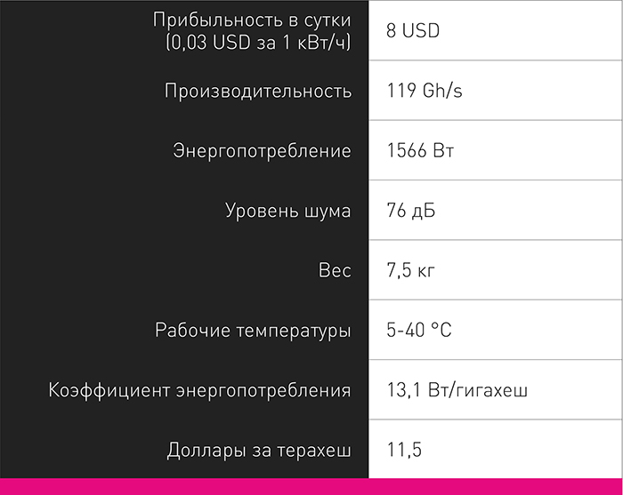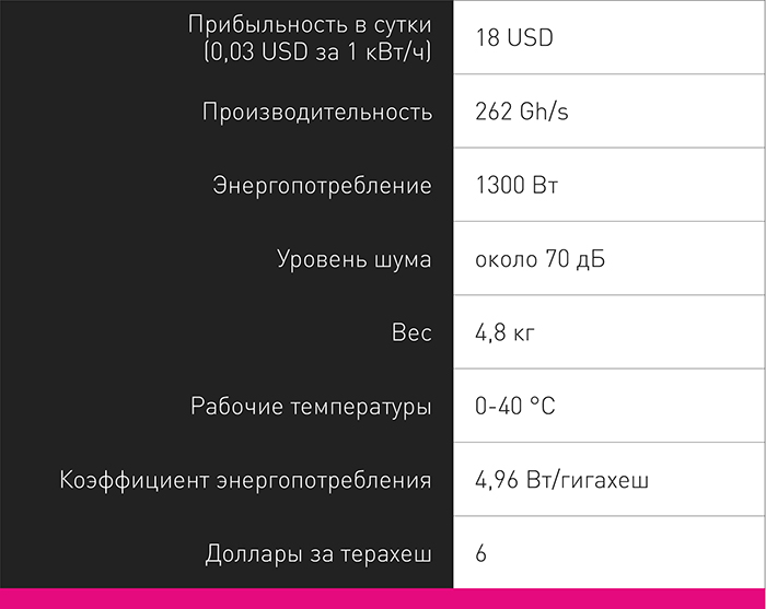 При трёхцентовой розетке доходность с одного майнера в месяц достигает 146 USD, в год — 1 750.